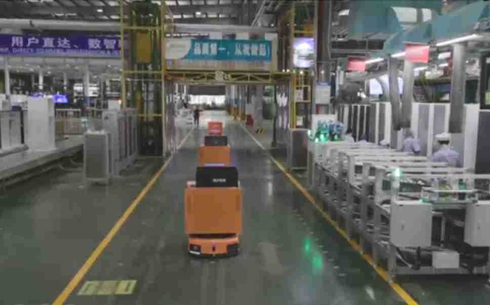 为车载冰箱物流配送打造的智能解决方案,,,包含产中物流通过潜伏举升AMR搬运至线边,,,,产后成品物流智能仓储,,,流程包含产中物流智能齐套入库,,,线边安灯叫料AMR智能配送至线边,,,成品入库、、、出库,,,通过无人堆高车机器人,,智能仓储管理替代人工作业管理,,,实现更高存储、、、更高效率、、、、更具柔性化的解决方案。。。